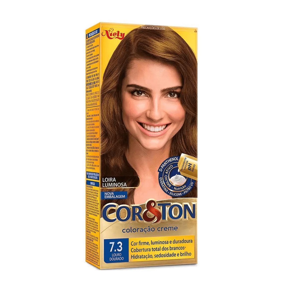 A Coloração Permanente Cor & Ton, de Niely Cosméticos, traz textura cremosa, que facilita a aplicação, distribuição e penetração dos pigmentos no cabelo. Sua fórmula é enriquecida com ativos hidratantes e fortalecedores, que tratam a estrutura da fibra enquanto promovem cor intensa e luminosa.